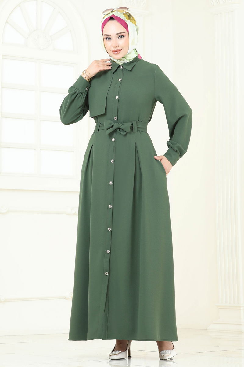 المنتج لديه ياقة القميص. المنتج به أزرار من الأمام. غير مبطنة. المنتج يحتوي على حزام خصر مُخاط. الحزام متضمن، ،يمكن استخدامها حسب الرغبة الجيب متاح. أزرار الكفة نشطة. قد يكون هناك اختلاف في الدرجة اللونية في المنتج بسبب التقاط الصور الفوتوغرافية.