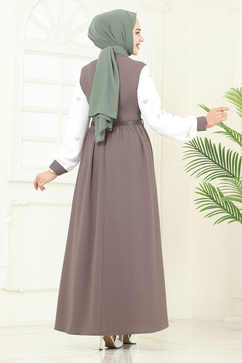 المنتج لديه ياقة نصف بيضوية. لا يوجد فتحات. غير مبطنة. المنتج به سحاب في جزء من الخلف. يتم خياطة تفاصيل التطريز. الحزام متضمن، ،يمكن استخدامها حسب الرغبة أزرار الكفة نشطة. قد يكون هناك اختلاف في الدرجة اللونية في المنتج بسبب التقاط الصور الفوتوغرافية.