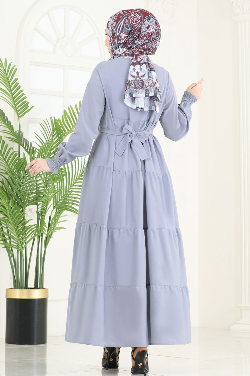 The Bolero Detail Tericotton Dress is an ideal modest apparel suitable for wearing across all four seasons. This dress can be washed with delicate care at 30 degrees and is crafted from durable and stylish tericotton fabric. Featuring a crew neckline and an unlined design, it offers a modern and practical look. The back-button detail enables easy wear while the hem has fixed ends with an option to remove the middle belt as preferred. Its elastic cuffs ensure a comfortable fit. The displayed model wears size 38, perfectly suiting her measurements: Height 167 cm, Chest 90 cm, Waist 70 cm, Hips 100 cm.Dress SIZE DIMENSIONS (CM)Size Chest Length 38 100 136 40 104 136 42 108 136 44 112 136 46 116 136 48 122 136 Weight (Kg):0.21 -
