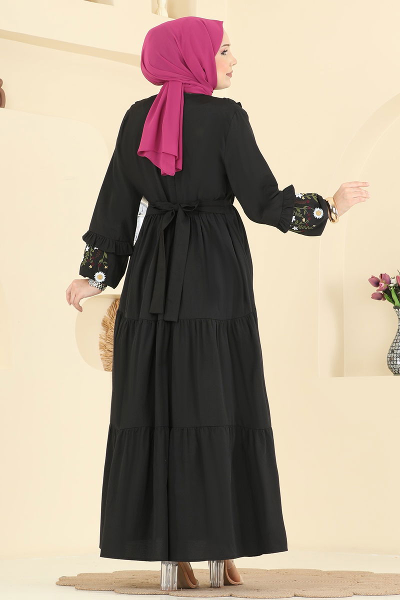 Discover the new Floral Embroidered Poplin Dress, a modest wear-friendly choice suitable for all seasons! Designed to be washable at 30 degrees on a delicate cycle, this dress combines comfort and elegance with its poplin fabric. The crew neck and unlined design offer a comfortable fit, while the back zipper makes it easy to wear. The elasticated waist and cuffs add extra comfort, and the attached belt and embroidery details enhance the dress's elegance. A must-have in every stylish woman's wardrobe, this dress ensures an elegant look in any setting.
