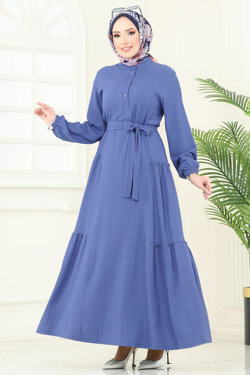 The Half-Buttoned Hijab Dress is a versatile piece suitable for all seasons. Made from the soft crinkle fabric, it offers a gentle texture and is washable at 30 degrees without squeezing, ensuring longevity. The bicycle neckline and half-buttoned front combine elegance with practical use. It features elastic cuffs for comfort, and the included belt can be used optionally. An essential addition to any woman's wardrobe, this dress is perfect for both everyday wear and special occasions.