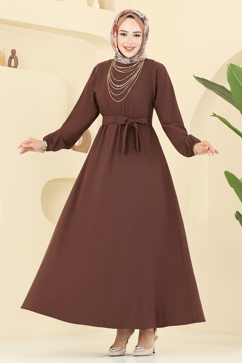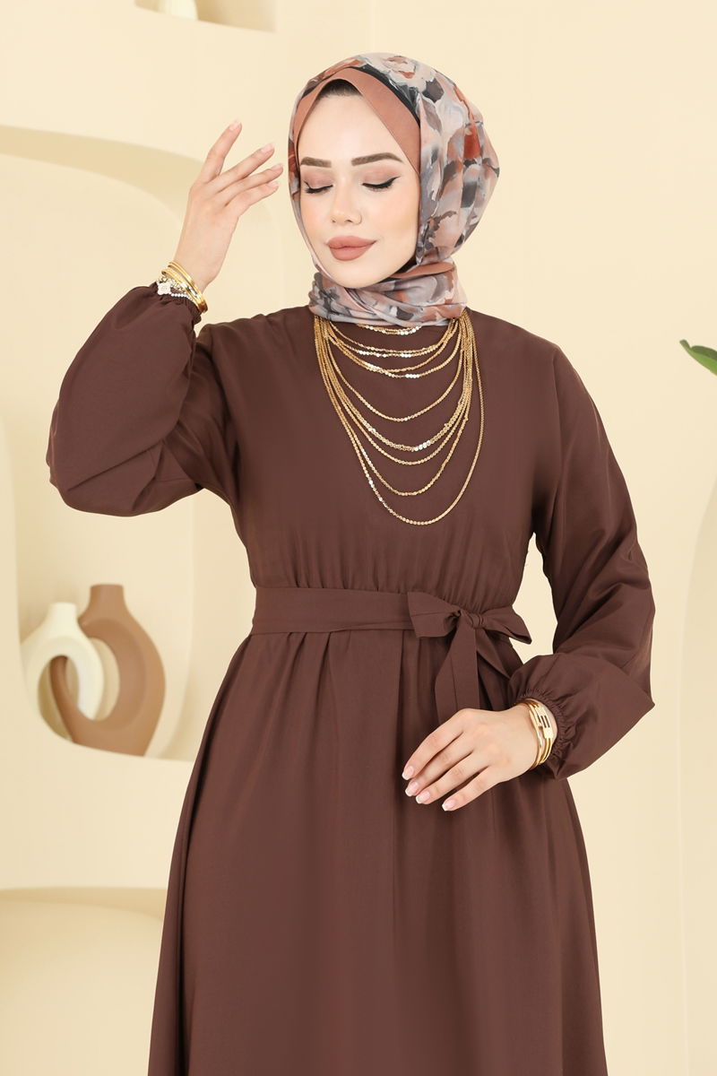 يوجد زر يمكن استخدامه من الخلف. المنتج لديه ياقة دائرية. غير مبطنة. المنتج يحتوي على حزام خصر مطاطي. الحزام متضمن، ،يمكن استخدامها حسب الرغبة السوار مطاطي. قد يكون هناك اختلاف في الدرجة اللونية في المنتج بسبب التقاط الصور الفوتوغرافية.