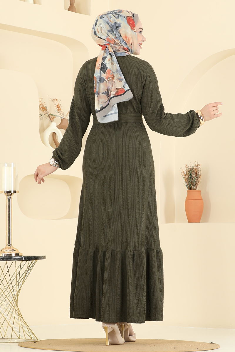 المنتج لديه ياقة دائرية. غير مبطنة. الحزام متضمن، ،يمكن استخدامها حسب الرغبة السوار مطاطي. قد يكون هناك اختلاف في الدرجة اللونية في المنتج بسبب التقاط الصور الفوتوغرافية.