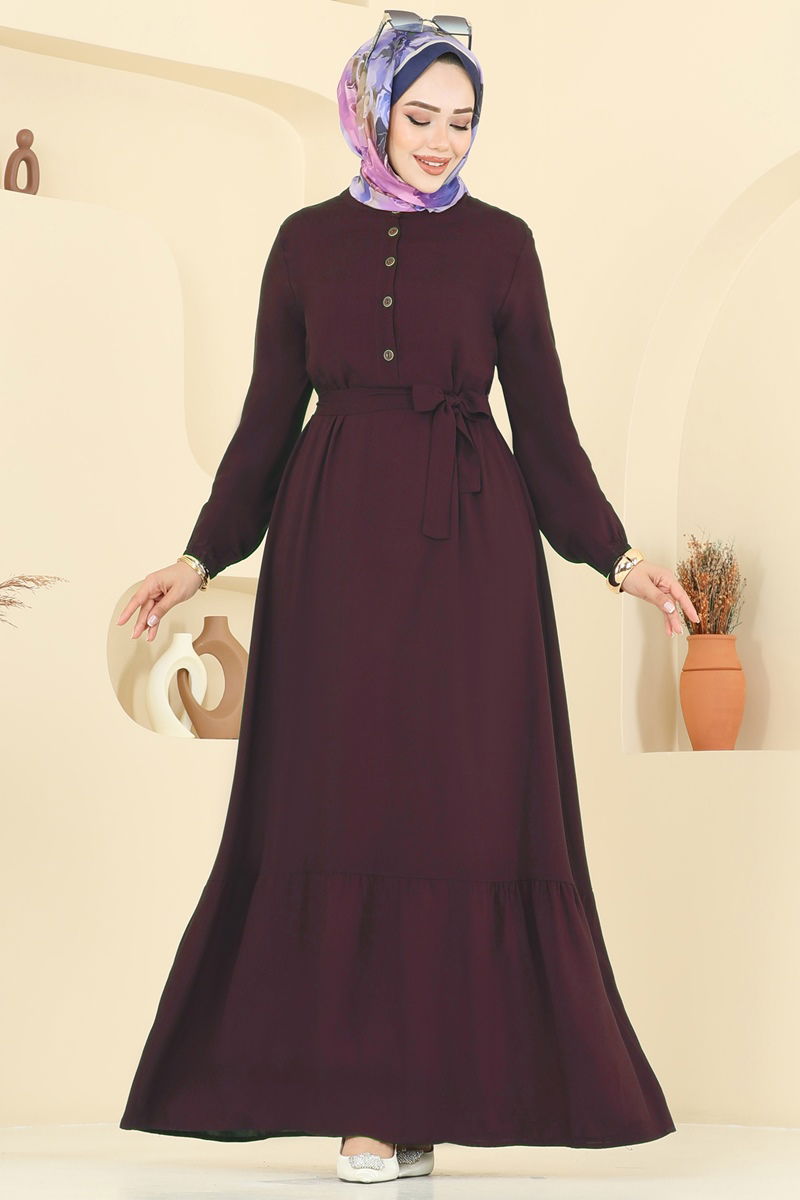 The Front Half-Buttoned Dress is ideal for those who prefer modest clothing. Suitable for all seasons, this dress is made from high-quality viscose fabric. It offers a practical yet stylish look with front half-button details. Featuring a semi Mandarin collar and elastic cuffs, it presents a modern posture. The included belt, which can be optionally used, enhances your silhouette. It is recommended to wash delicately at 30 degrees Celsius.