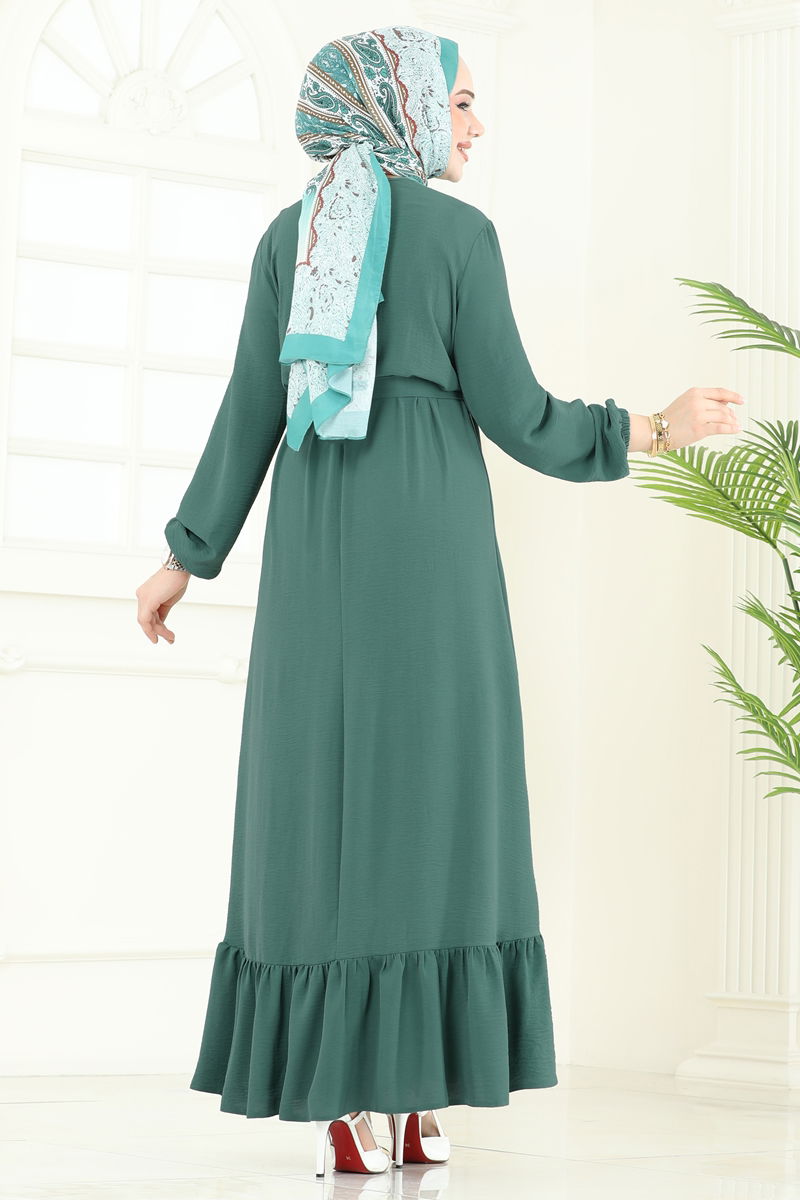 Product Feature : It is a new season hijab fashion product. It has a button that can be used from the back. The product is worn on the head. The product has a Cycling collar. Unlined. Belt included, optional not available. Accessories are not included. The cuff is rubberized. There may be a tonal difference in the product due to concept photo shoots.