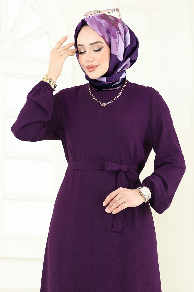 This elegant and comfortable Cuff Elastic Aerobin Dress can be easily worn throughout all seasons. It offers practical use with its 30-degree delicate wash feature. Made from Aerobin fabric, this dress stands out with its crewneck and unlined design. The model displayed is a size 38 and features a back-button which enables easy overhead dressing. The belt included with the dress can be optionally removed. With elastic cuffs, this dress ensures you always look chic.