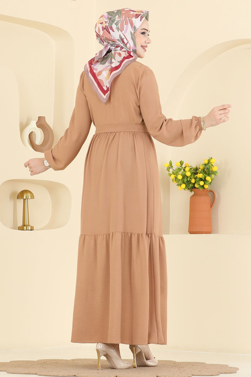 المنتج لديه ياقة القميص. المنتج به أزرار نصف أمامي. المنتج به كشكشة في جزء التنورة. غير مبطنة. المنتج يحتوي على حزام خصر مُخاط. الحزام متضمن، ،يمكن استخدامها حسب الرغبة السوار مطاطي. قد يكون هناك اختلاف في الدرجة اللونية في المنتج بسبب التقاط الصور الفوتوغرافية.