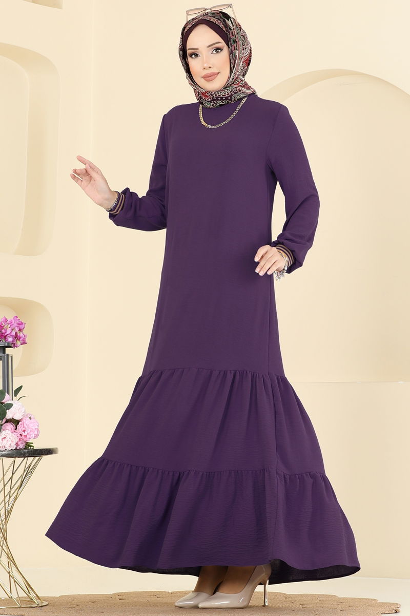 With its innovative and chic design, the Cuffed Garnish Detailed Aerobin Dress is perfect for all seasons. This dress is made from light and breathable aerobin fabric and features a bicycle neck design that offers a modern look. Its lining-free design aims for lightness, while the elastic details on the cuffs provide both comfort and style. It can be easily worn and taken off with a button located at the back. Ideal for those seeking an elegant option in modest fashion.