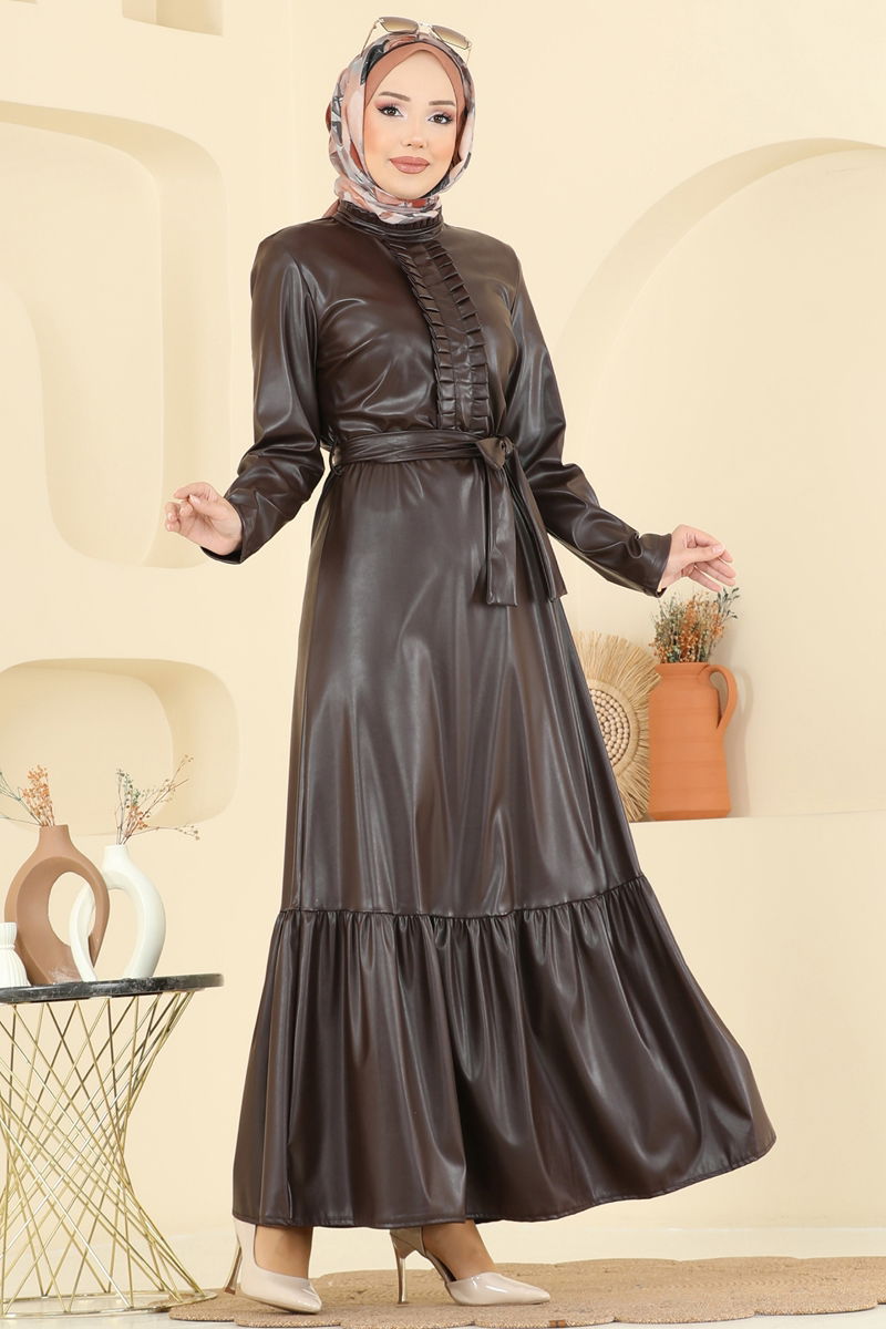 المنتج لديه ياقة كشكش. غير مبطنة. المنتج به سحاب في جزء من الخلف. المنتج يحتوي على حزام خصر مُخاط. الحزام متضمن، ،يمكن استخدامها حسب الرغبة قد يكون هناك اختلاف في الدرجة اللونية في المنتج بسبب التقاط الصور الفوتوغرافية.