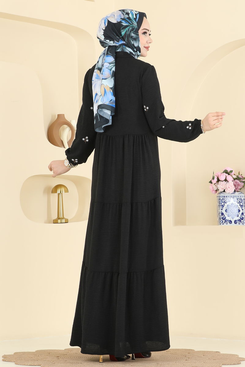 المنتج لديه ياقة نصف بيضوية. المنتج به أزرار نصف أمامي. المنتج به كشكشة في جزء التنورة. غير مبطنة. يتم خياطة تفاصيل التطريز. السوار مطاطي. قد يكون هناك اختلاف في الدرجة اللونية في المنتج بسبب التقاط الصور الفوتوغرافية.
