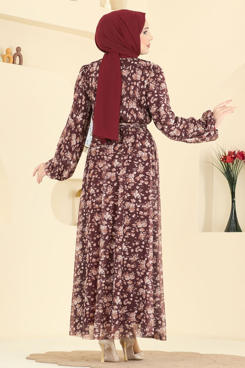The Floral Printed Tulle Dress is a modest clothing option suitable for all seasons. It can be washed at 30 degrees on a gentle cycle and is made from tulle fabric. Designed with a crew neck and stretchable lining, it offers practicality via a button at the back. The elastic waist ensures a comfortable fit, while the included belt, designed to prevent waving, can be optionally omitted.
