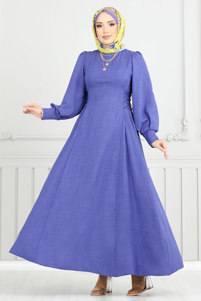 This chic Side Lace-Up Modest Dress is a perfect choice for all-season wear. Made from quality linen fabric, this dress offers long-lasting use and can be washed at 30 degrees on a delicate cycle. The back zipper facilitates easy dressing, while the bicycle neckline adds a modern touch. The lace-up detail at the waist enhances your elegance. With its lining-free design, this dress promises lightweight and comfortable wear, ensuring an elegant posture in any setting.Dress SIZE DIMENSIONS (CM)Size Chest Length 38 94 135 40 96 135 42 100 135 44 102 135 46 104 135 Weight (Kg):0.73 -