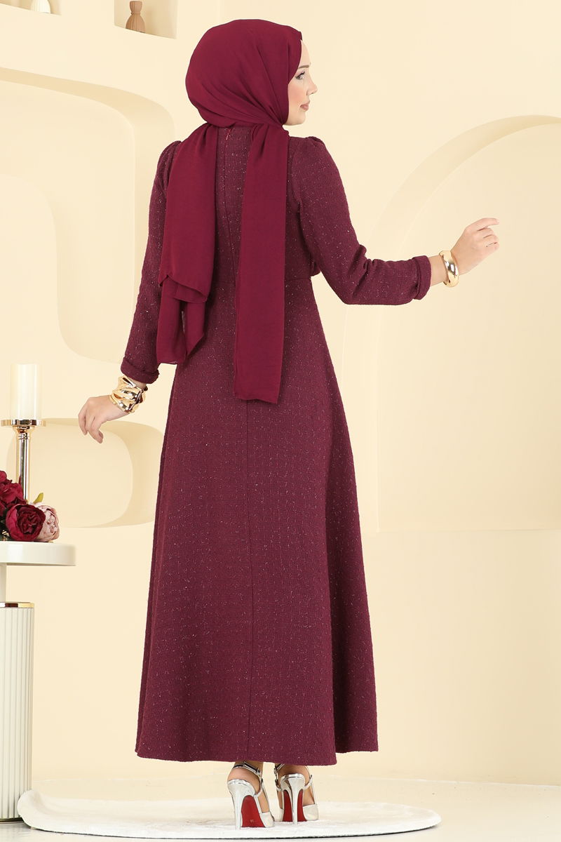 The Bolero Detail Accessory Dress, with its unique design and elegant appearance, will warm your autumn and winter seasons. This hijab dress can be washed at 30 degrees with its delicate wash feature, and offers comfort and convenience with its bicycle neck design and zipper back. Made of tweed fabric, this model is unlined and the bolero detail is fixed, while the ribbon accessory is optional. The product size on the model is 38.