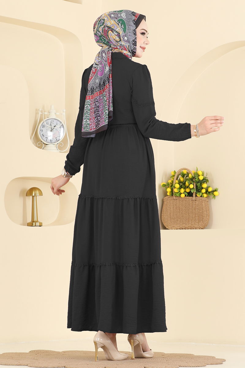 With its unique design and comfort, the Pattern Detailed Aerobin Dress brings a fresh breath to modest fashion, suitable for all seasons. Washable at 30 degrees on a gentle cycle, this dress offers both style and convenience with its half mandarin collar and half-button front details. Featuring a tie-waist and elasticated cuffs, this model combines the lightness and breathability of aerobin fabric to ensure comfort all day long. Ideal for those seeking a lightweight and comfortable option, this unlined dress is presented in a size 38 model, making it suitable for every body type and style.