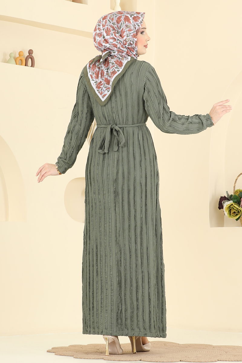 المنتج لديه ياقة دائرية. غير مبطنة. الحزام متضمن، ،يمكن استخدامها حسب الرغبة قد يكون هناك اختلاف في الدرجة اللونية في المنتج بسبب التقاط الصور الفوتوغرافية.