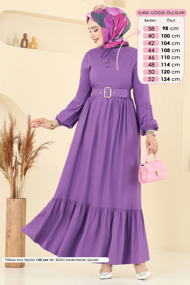 The Coated Belted Dress is a stylish modest wear product made from viscose fabric suitable for all seasons. It features a sleek design with a bicycle neckline and is unlined. Hand washing is recommended. The waist of the dress is sewn, and it is beautifully accented with a belt detail. The belt is designed with sewn ends to prevent waving and can be optionally removed. The cuffs are elasticated, and the product displayed is a size 38.