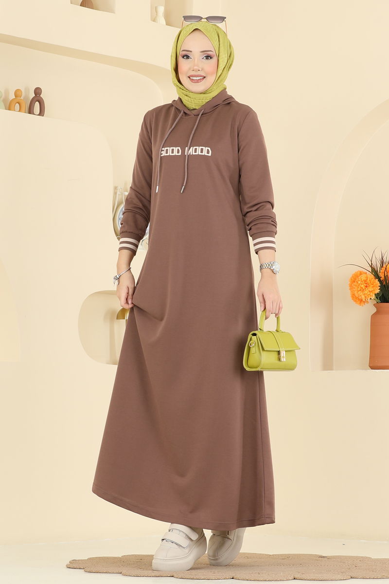 Product Feature : It is a new season hijab fashion product. The neck drawstring is active. The product has a Hooded collar. Unlined. The writings are in print. The hood is sewn to the product. There may be a tonal difference in the product due to concept photo shoots.