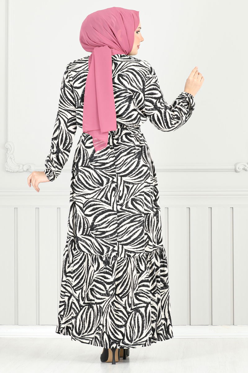 المنتج لديه ياقة نصف بيضوية. غير مبطنة. المنتج به سحاب في جزء من الخلف. الحزام متضمن، ،يمكن استخدامها حسب الرغبة السوار مطاطي. قد يكون هناك اختلاف في الدرجة اللونية في المنتج بسبب التقاط الصور الفوتوغرافية.