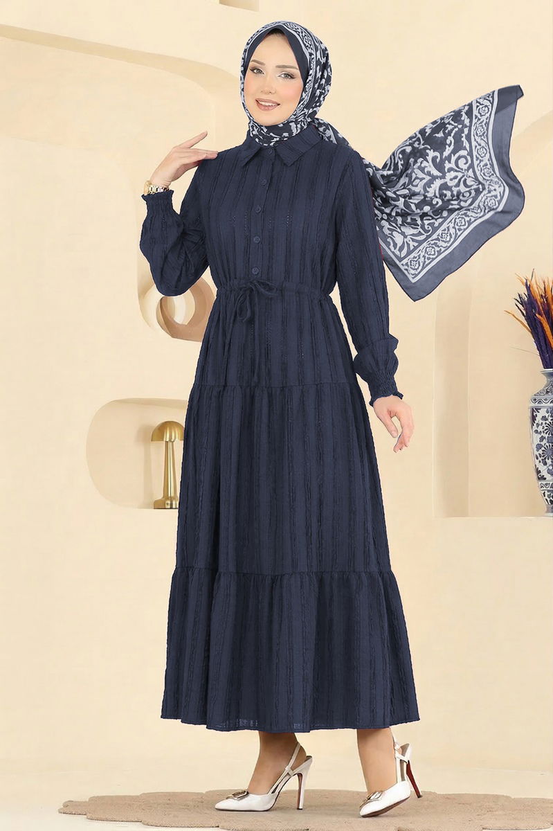 يتميز بخصر ذو أربطة. المنتج لديه ياقة القميص. المنتج به أزرار نصف أمامي. السوار مطاطي. قد يكون هناك اختلاف في الدرجة اللونية في المنتج بسبب التقاط الصور الفوتوغرافية.