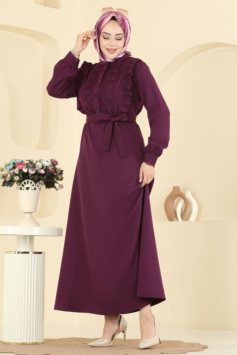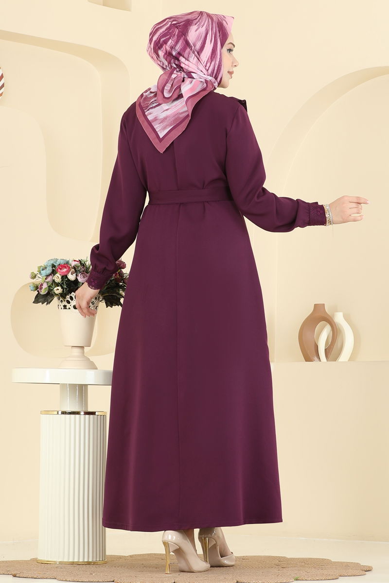 المنتج لديه ياقة نصف بيضوية. المنتج به أزرار نصف أمامي. غير مبطنة. تتم خياطة تفاصيل الدانتيل على المنتج. المنتج يحتوي على حزام خصر مُخاط. الحزام متضمن، ،يمكن استخدامها حسب الرغبة أزرار الكفة نشطة. قد يكون هناك اختلاف في الدرجة اللونية في المنتج بسبب التقاط الصور الفوتوغرافية.