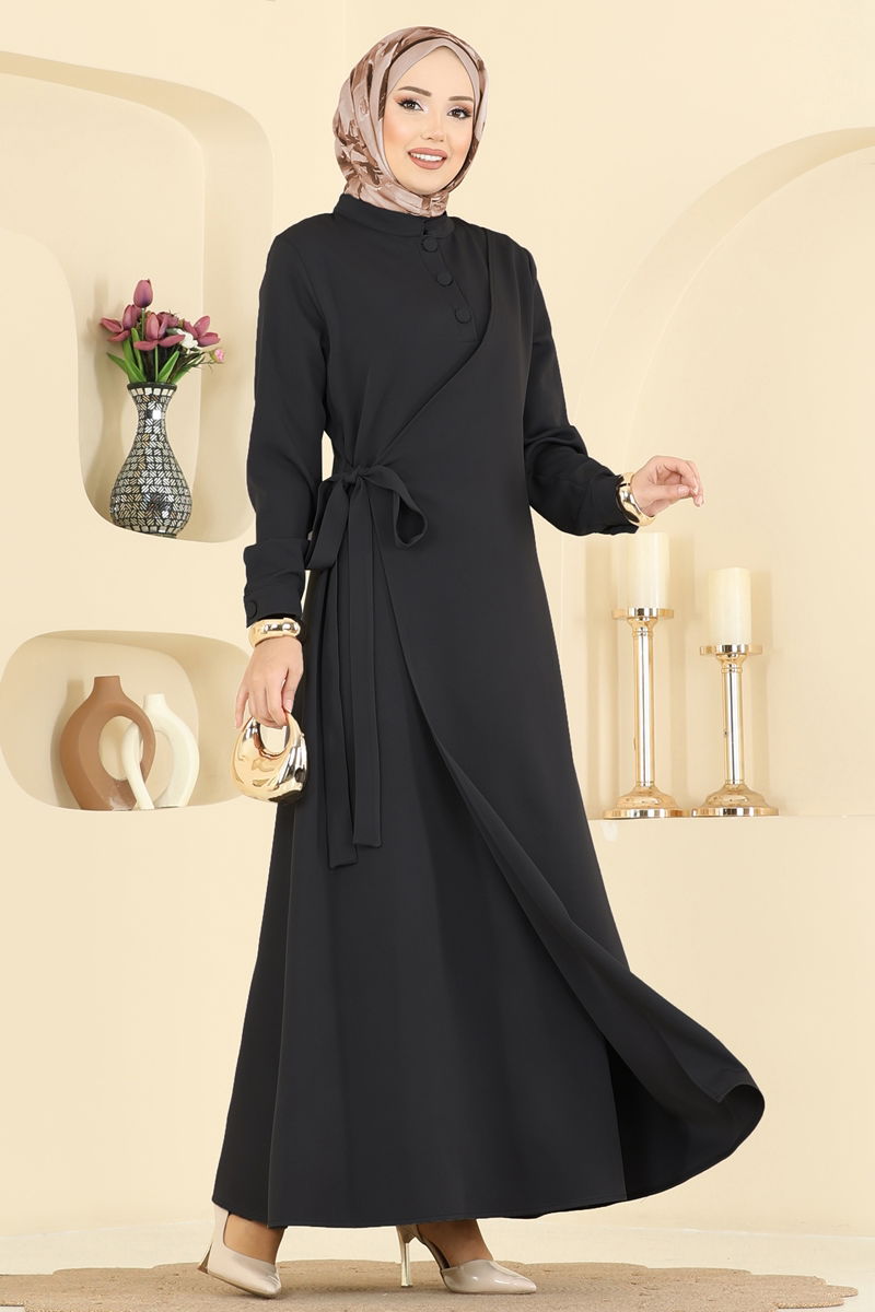 The Side Lace-up Dabıl Dress is an elegant modest wear suitable for any occasion. Wearable throughout all seasons, this dress is machine washable at 30 degrees on a gentle cycle. Made from premium Dabıl fabric, it features a semi-high collar and front half-button design that offers a contemporary look. Its unlined design makes it lightweight and comfortable. With active cuff buttons, it adds functionality. The perfect choice for those seeking style and practicality.