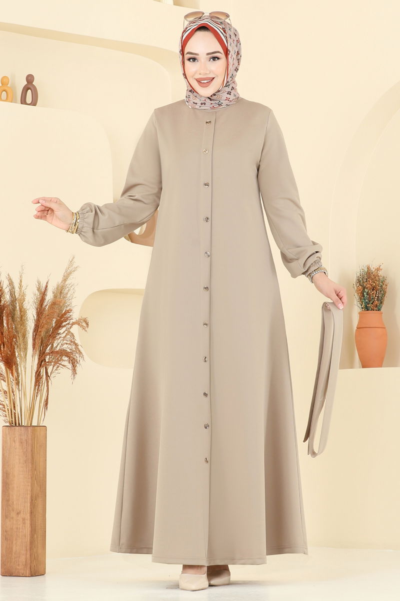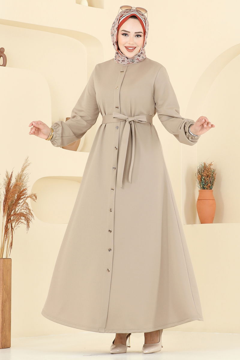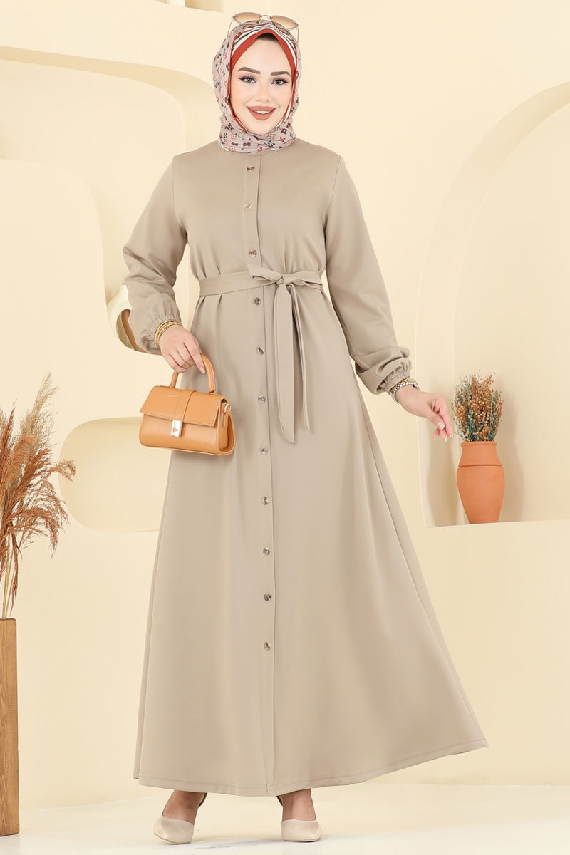 Ürün Detayları: Bu ürün yeni sezon tesettür modasına uygun tasarlanmıştır. Bisiklet yaka tasarımına sahiptir. Elbise, gizli düğme detaylarına sahiptir ve düğmeler dekoratif olarak kullanılmaktadır. Astarsız yapıdadır. Ürüne dahil olan kemer isteğe bağlı olarak çıkartılabilir. Manşetler elastiktir. Çekimler sırasında ışık farklılıklarından dolayı renk tonlarında farklılık gözlemlenebilir.