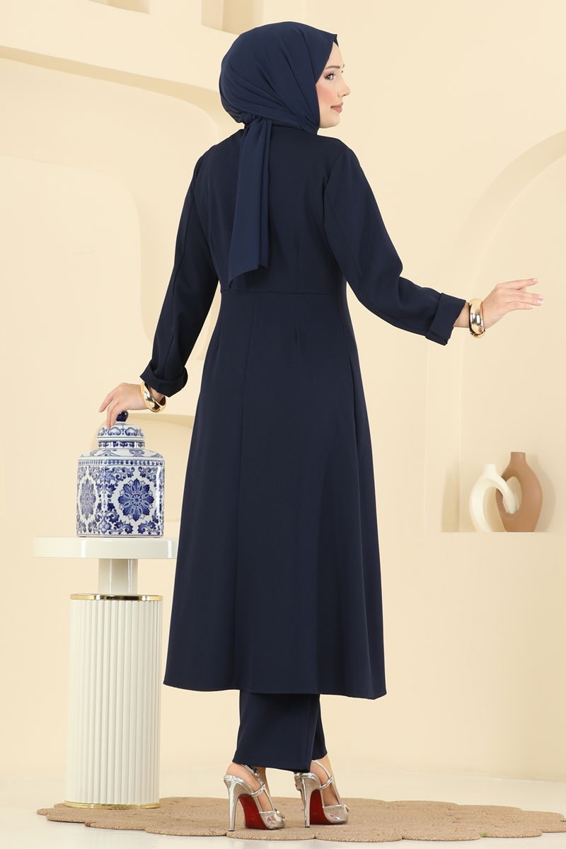 Düğmeli Dabıl Kumaş Takım Lacivert
