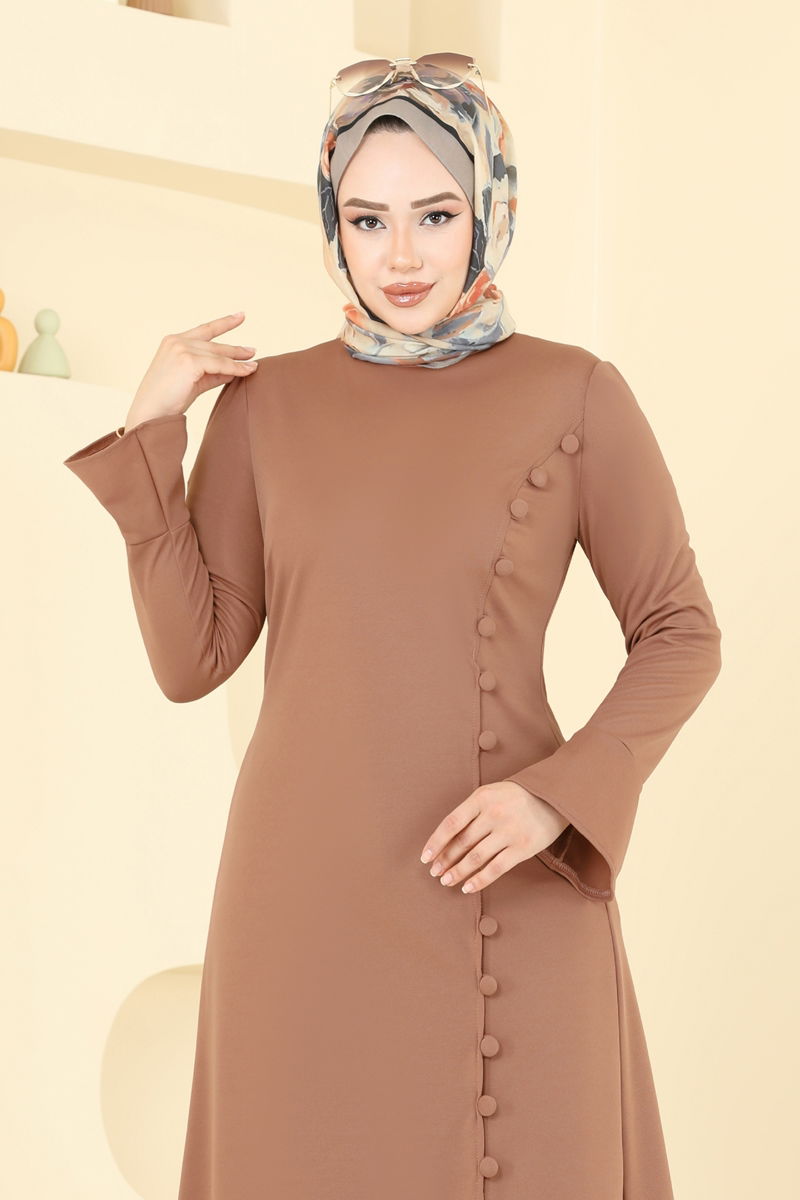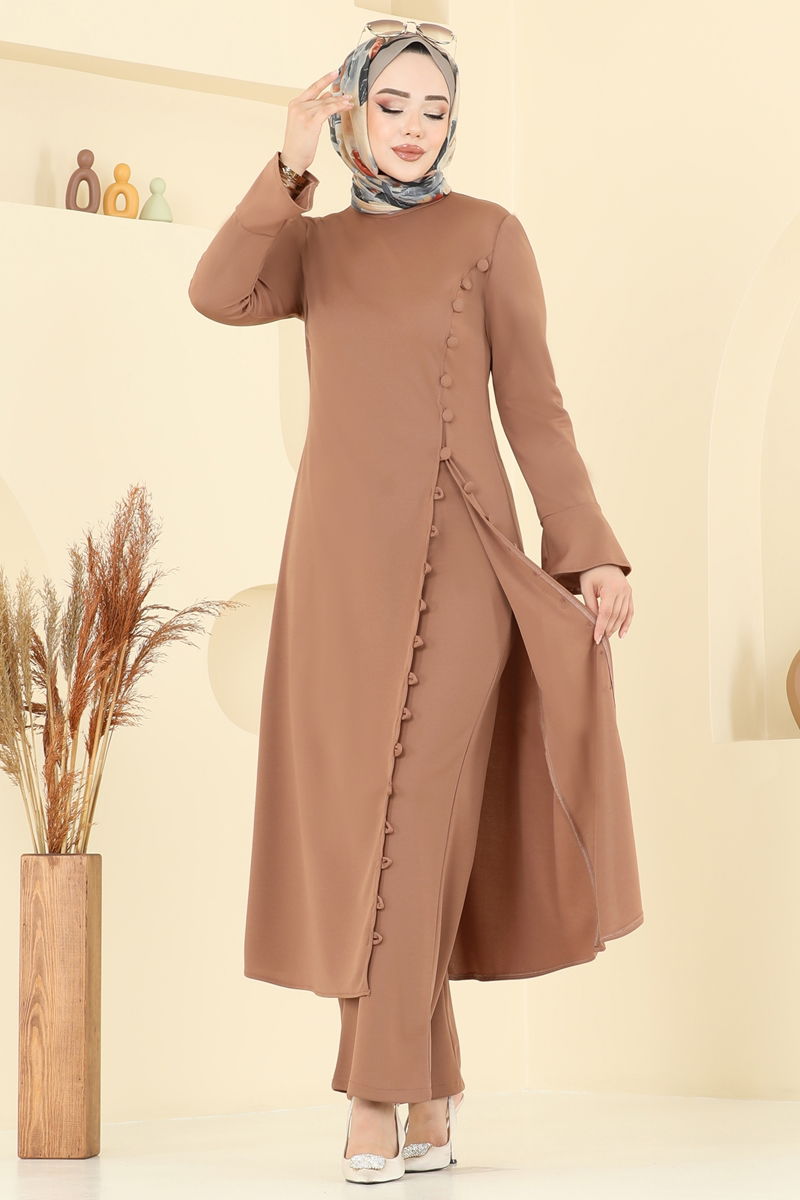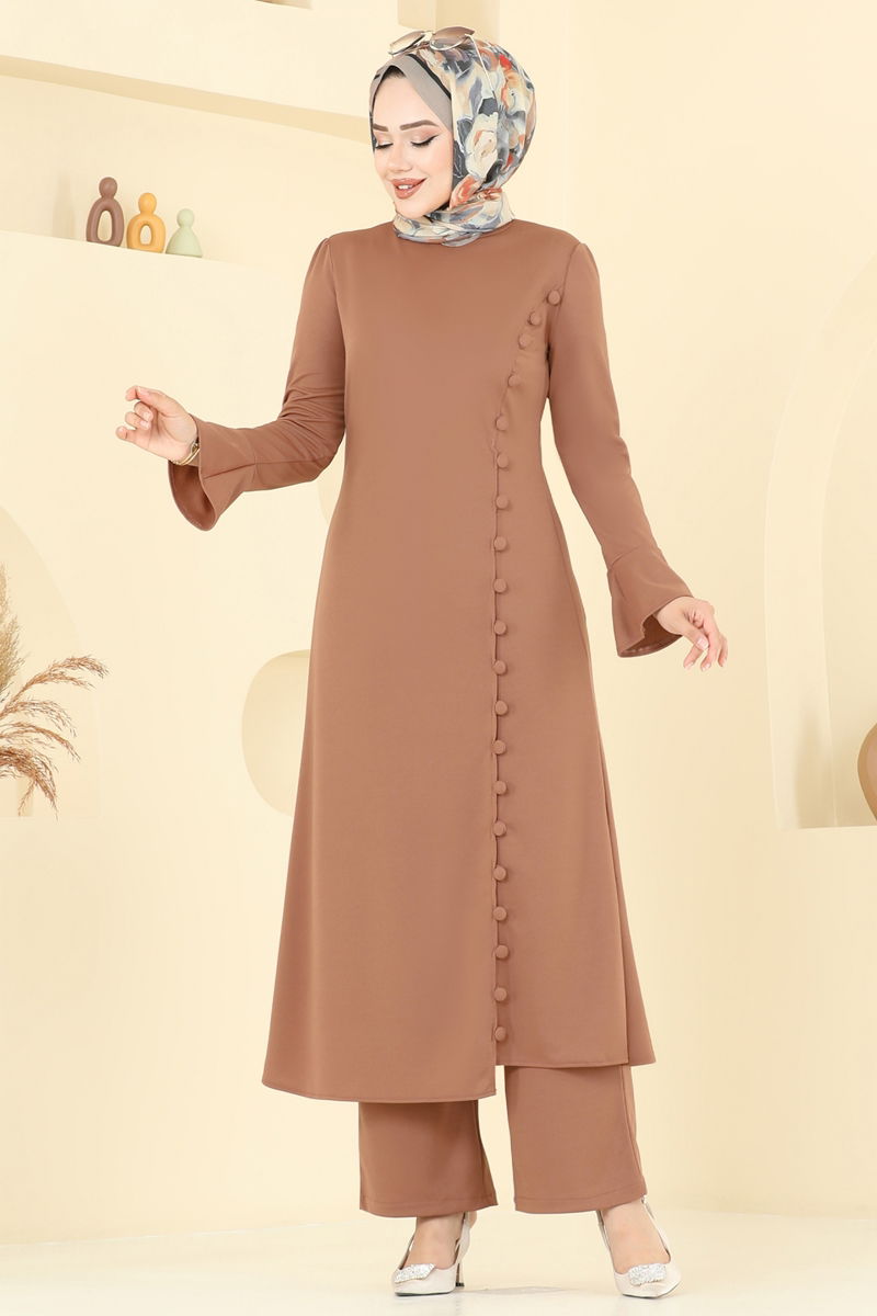 Detaylı Düğmeli Dabıl Kombin Seti - Taba Rengi
