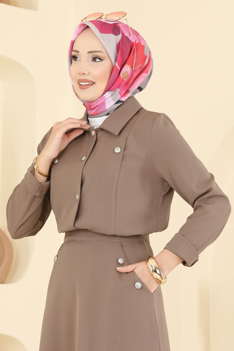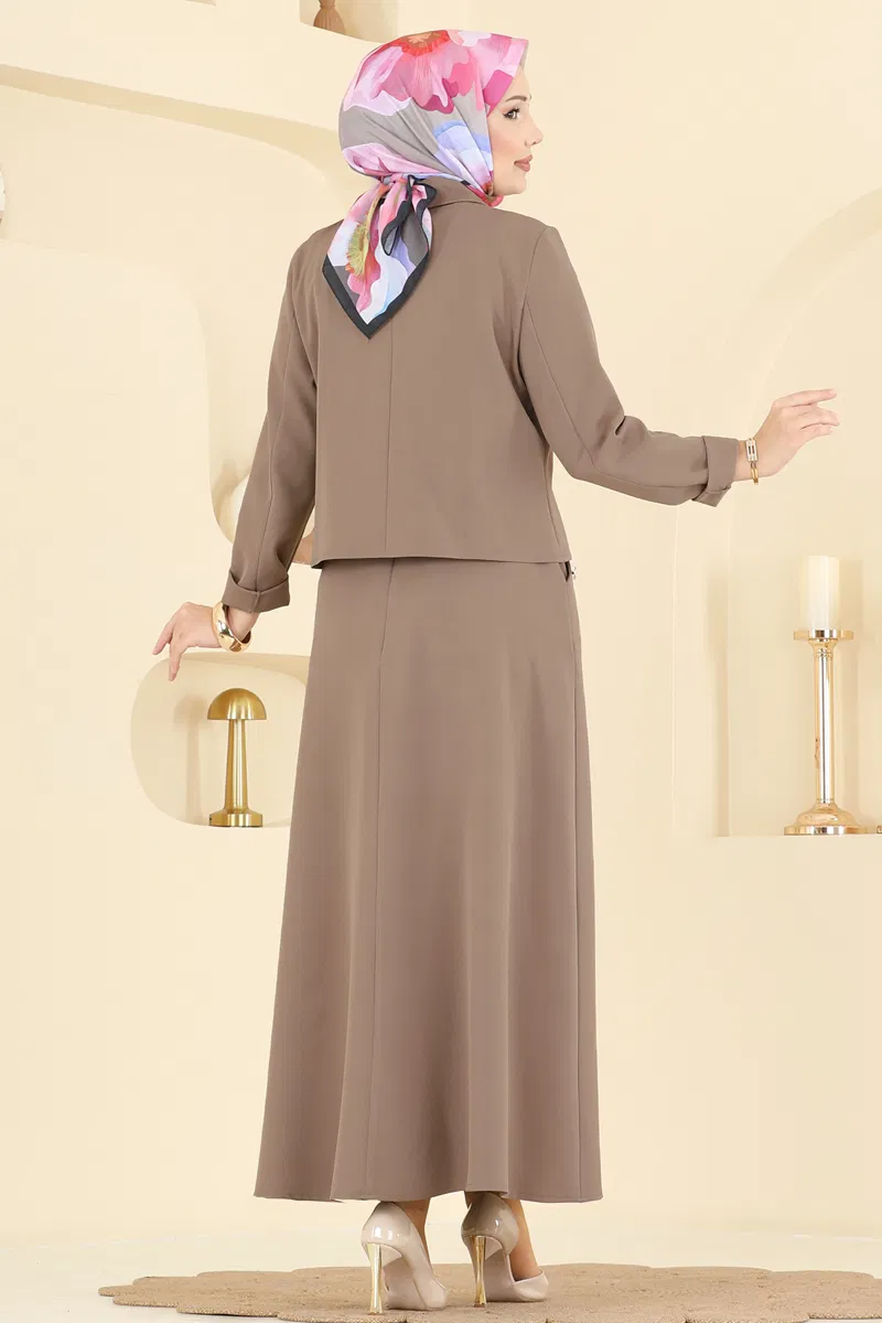 Düğme Detaylı Etekli Takım 2776SL432-MS Koyu Vizyon