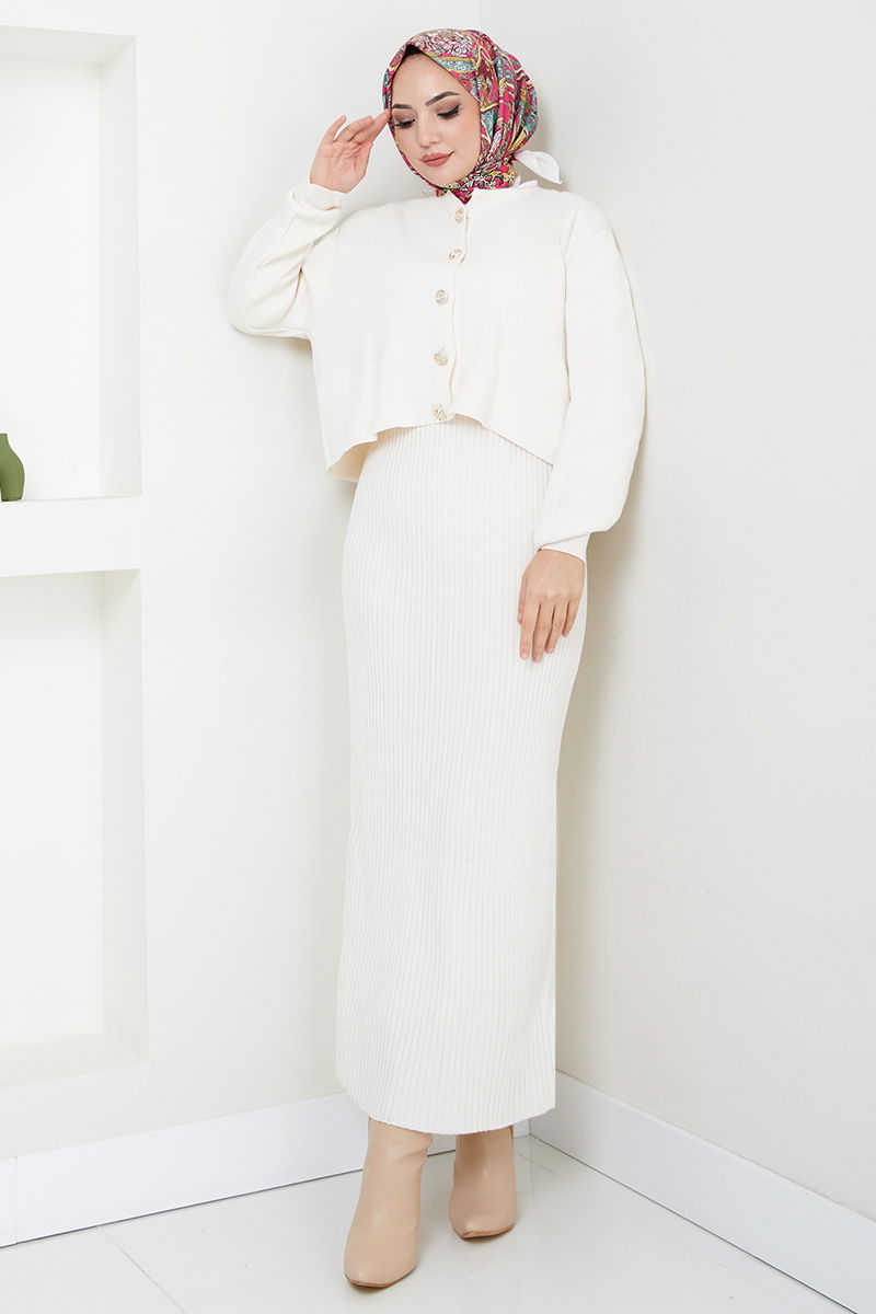 Products Including Button Detail Suit Tashkombine : Blouse and dress. Fabric Feature: It is made of first-class Knitwear fabric. It can be used in Autumn and Winter season. Product Feature: New season hijab is a fashion product. The product is a bicycle collar. The product is buttoned from the front. It is unlined.. There may be a tonal difference in the product due to concept photo shoots. Washing : It should be washed at 30 degrees without squeezing. (The product on the model is the standard size.) The Button is a Detailed Tool model hijab product. It can be used in Autumn and Winter season. it should be washed at 30 degrees without squeezing. It is made of premium knitwear fabric. The product is a bicycle collar. The product is buttoned from the front. It is unlined. (The product on the model is the standard size.)Weight (Kg):0.49