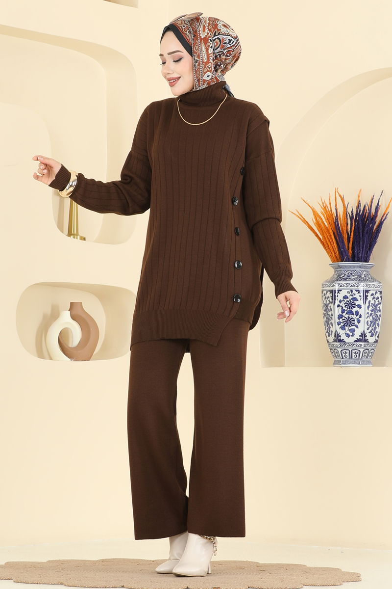 Düğme Detaylı Triko Takım 2775AYD574-MS Kahve