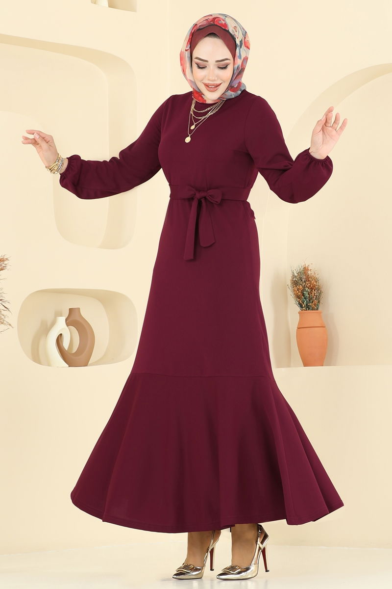 The Tiered Skirt Mira Dress is a modern modest wear piece that can be comfortably worn across all seasons. Recommended to be washed at 30 degrees on a gentle cycle, this dress is made from durable Mira fabric. Featuring a crew neck and a liner-free design, it offers comfort, while the standard elastic cuffs provide convenience. The dress includes a specially designed belt with stitched ends and an unstitched middle, enhancing its elegance while being optionally removable. Its classic and stylish look stands out in any setting.