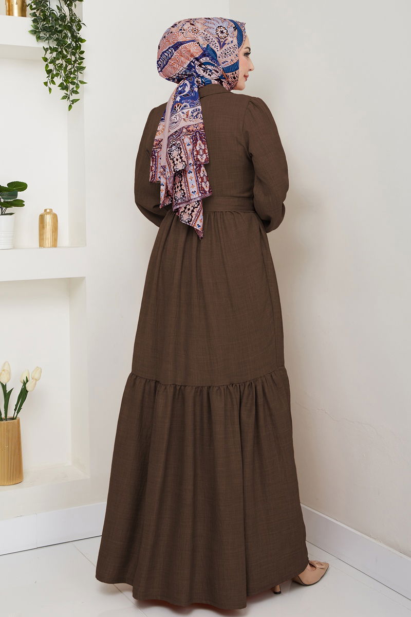 المنتج لديه ياقة القميص. المنتج به أزرار نصف أمامي. غير مبطنة. المنتج يحتوي على حزام خصر مُخاط. الحزام متضمن، ،يمكن استخدامها حسب الرغبة السوار مطاطي. قد يكون هناك اختلاف في الدرجة اللونية في المنتج بسبب التقاط الصور الفوتوغرافية.
