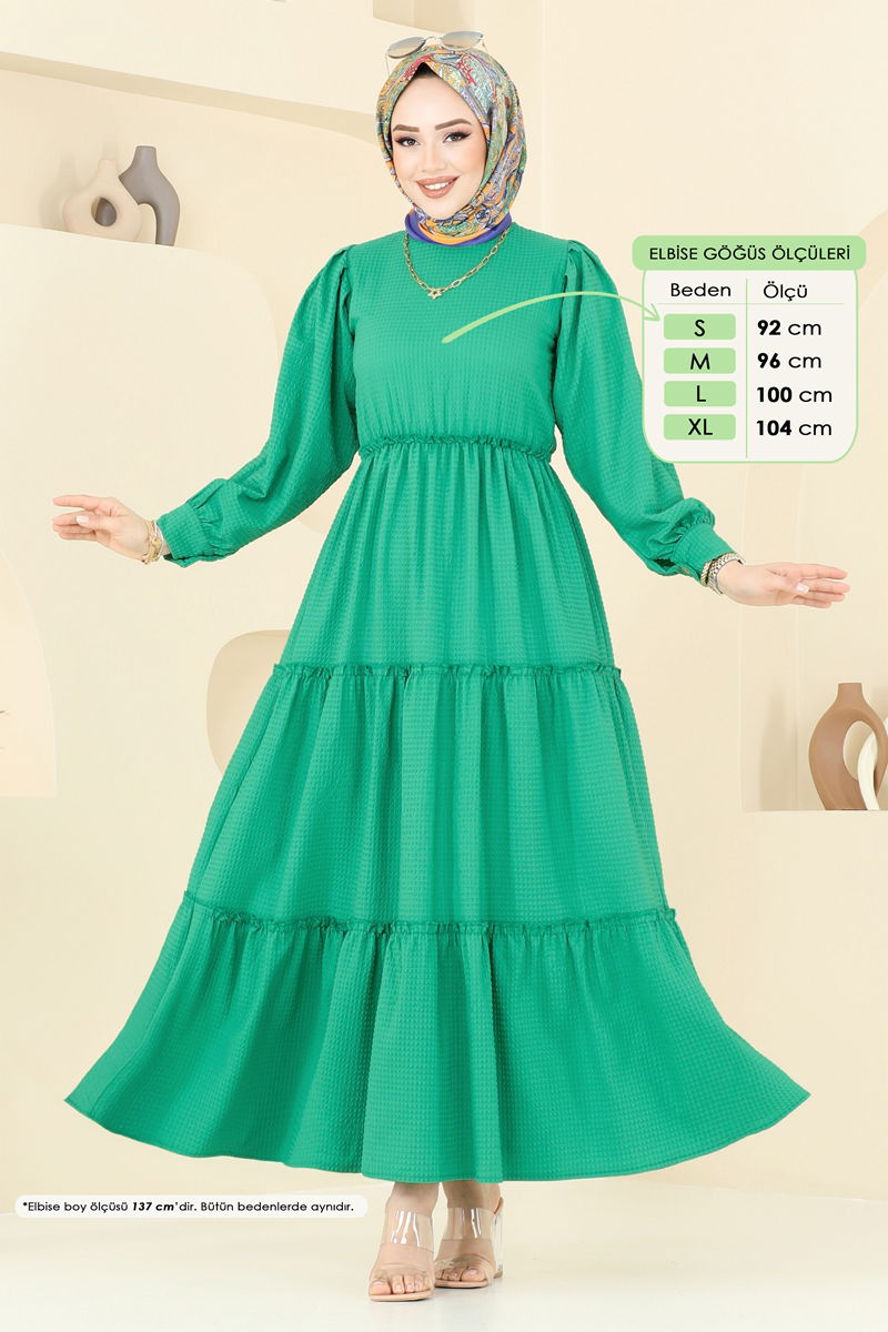 Eteği Katlı Tesettür Elbise 3033TBL694-MS Yeşil