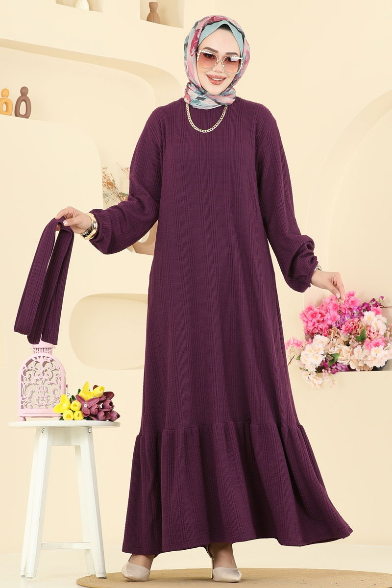 Eteği Katlı Tesettür Elbise 4127PM271-MS Mürdüm
