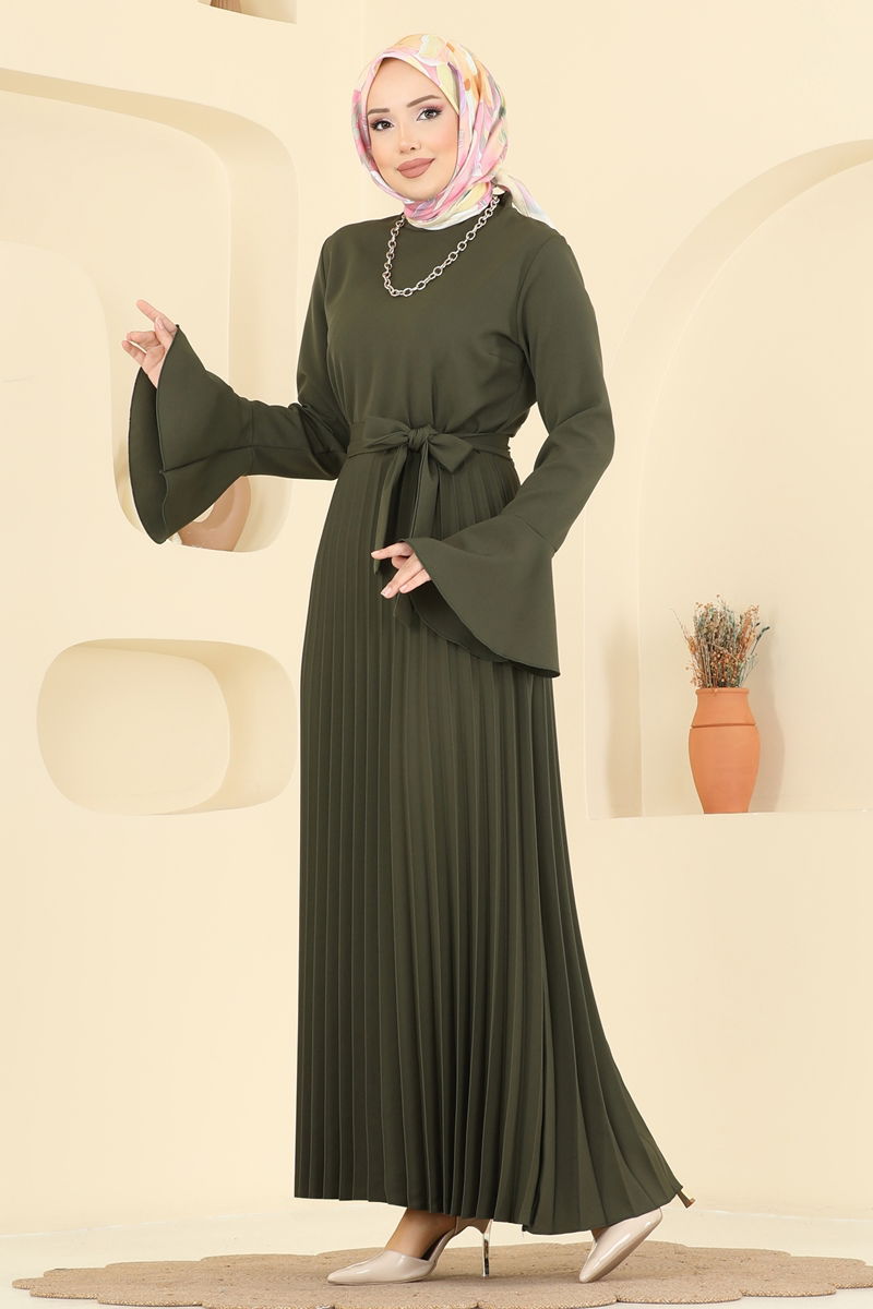 Eteği Pilise Detaylı Elbise 5627EDF311-MS Haki