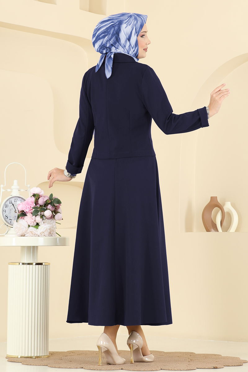 المنتج لديه ياقة مفتوحة. المنتج به أزرار من الأمام. غير مبطنة. التنورة تحتوي على سحاب على الخصر قد يكون هناك اختلاف في الدرجة اللونية في المنتج بسبب التقاط الصور الفوتوغرافية.