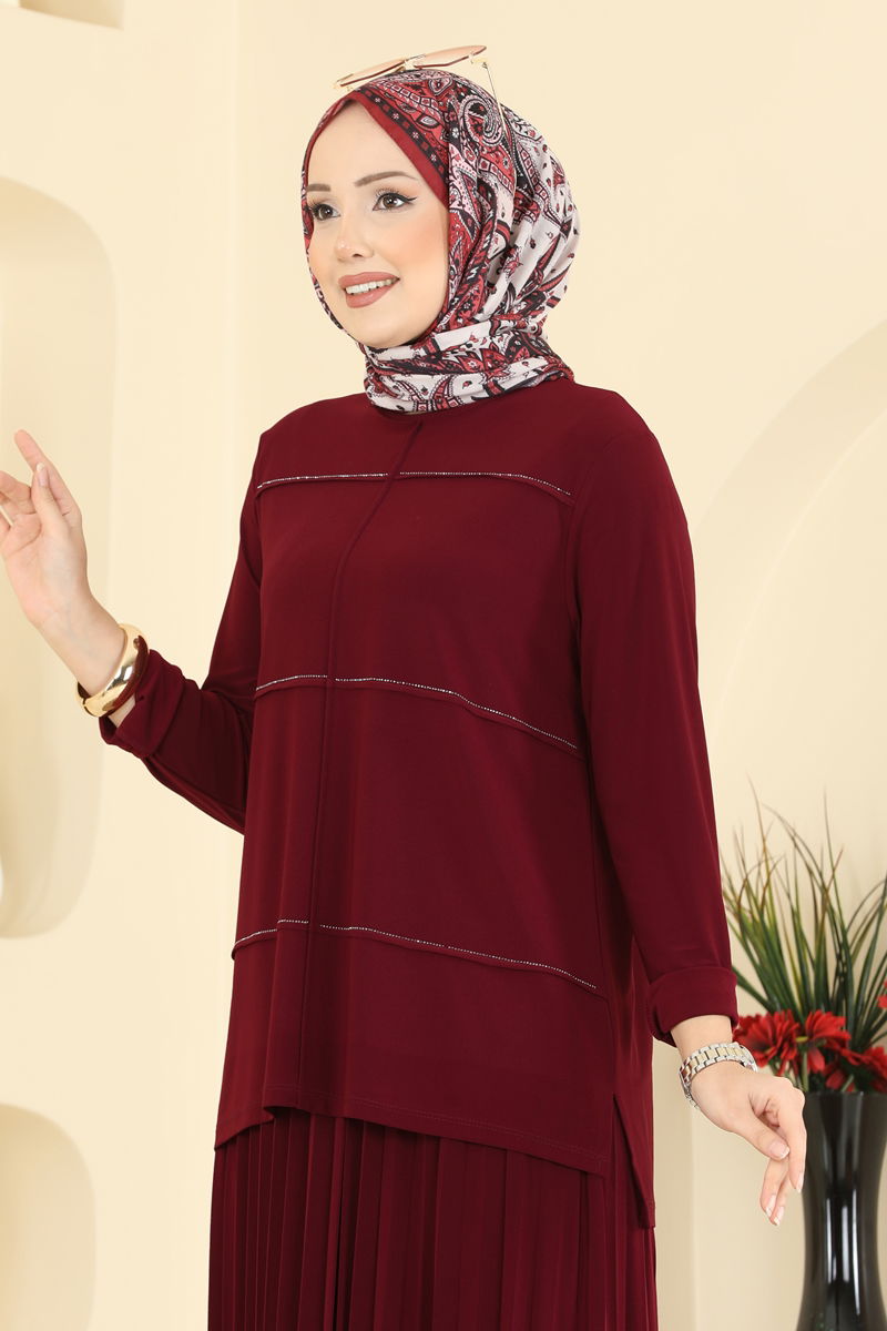 Eteği Piliseli Sandy Takım 3483UZ662-MS Bordo