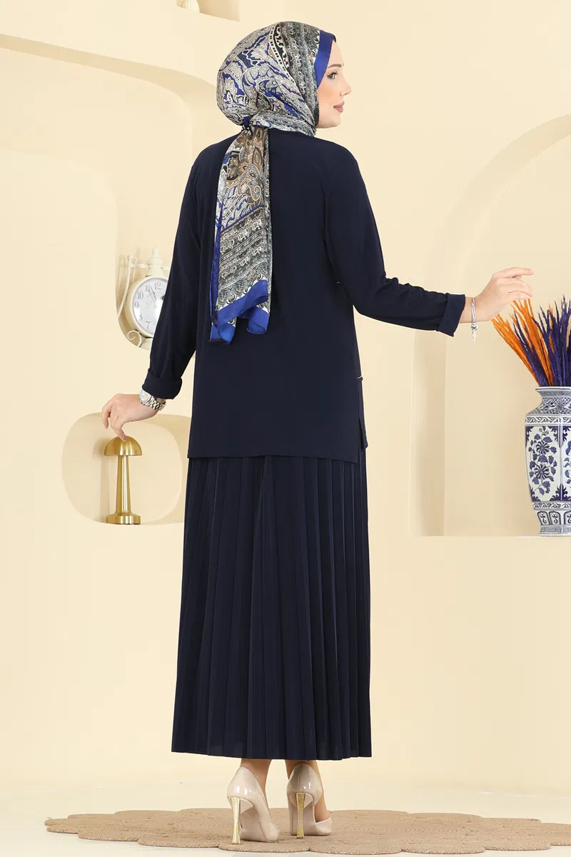 Sandy Renk Takım Piliseli Etek, tesettür giyimde şıklığı ve rahatlığı bir arada sunan modern bir kombindir. Dört mevsim uygun bu parça, 30 derecede hassas yıkama imkanı ile kolayca temizlenebilir. Bisiklet yaka ve yanda yırtmaçlı tunik, hem şık hem de konforlu bir kullanım sağlar. Astarının olmaması ve şeffaf olmayan kumaşı ile rahat bir deneyim sunar. Lastikli etek beli ile gün boyu rahatlık sunar. Taş detayları ile dikkat çekici bir görünüm kazandırır. Sunulan 38 beden örnek, farklı beden seçenekleri ile de mevcuttur.