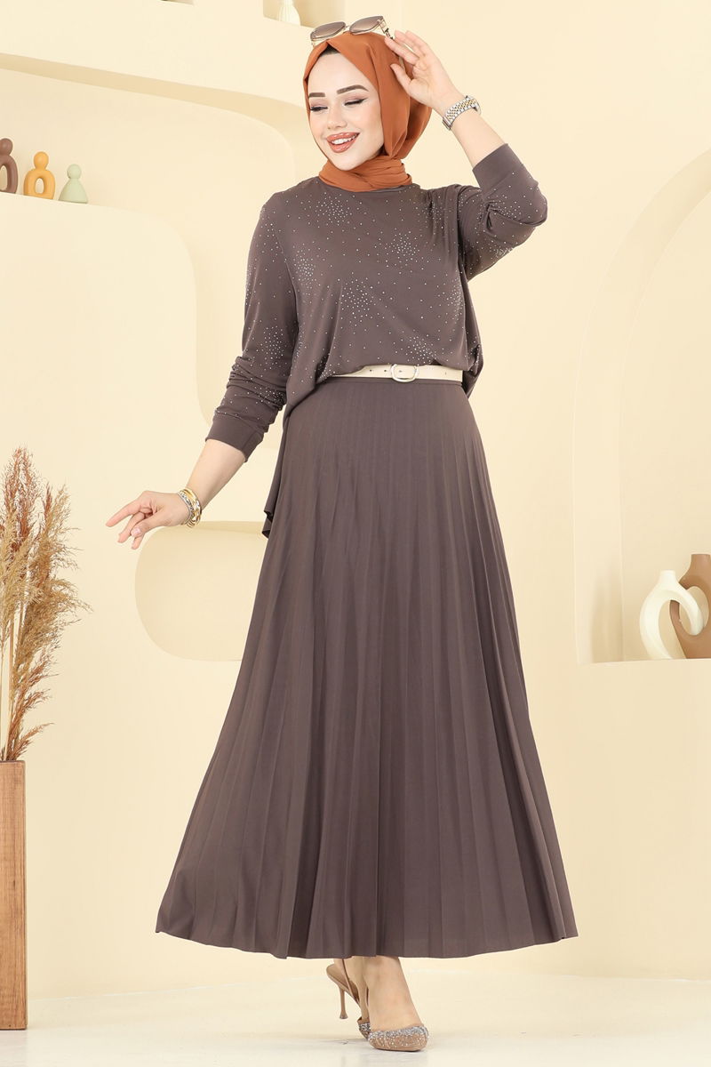 البلوز تحتوي على فتحة. غير مبطنة. يتم لصق الحجارة. الحزام غير متضمن. .خصر التنورة مرن قد يكون هناك اختلاف في الدرجة اللونية في المنتج بسبب التقاط الصور الفوتوغرافية.