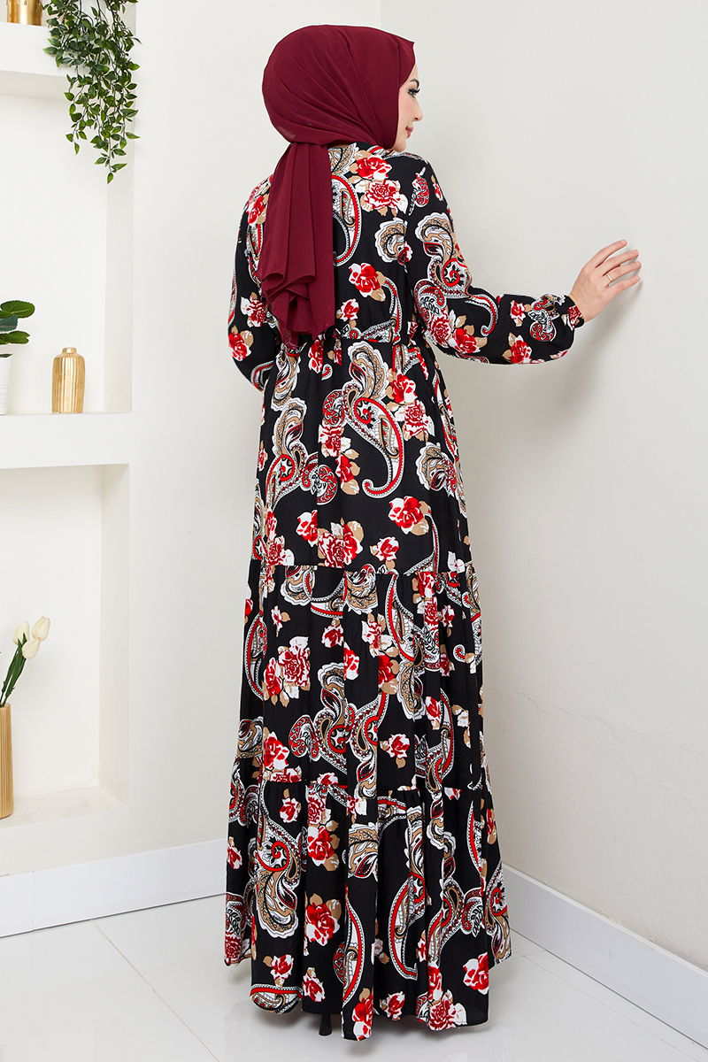 Etnik Desen Tesettür Elbise 823OZR1047-M Siyah
