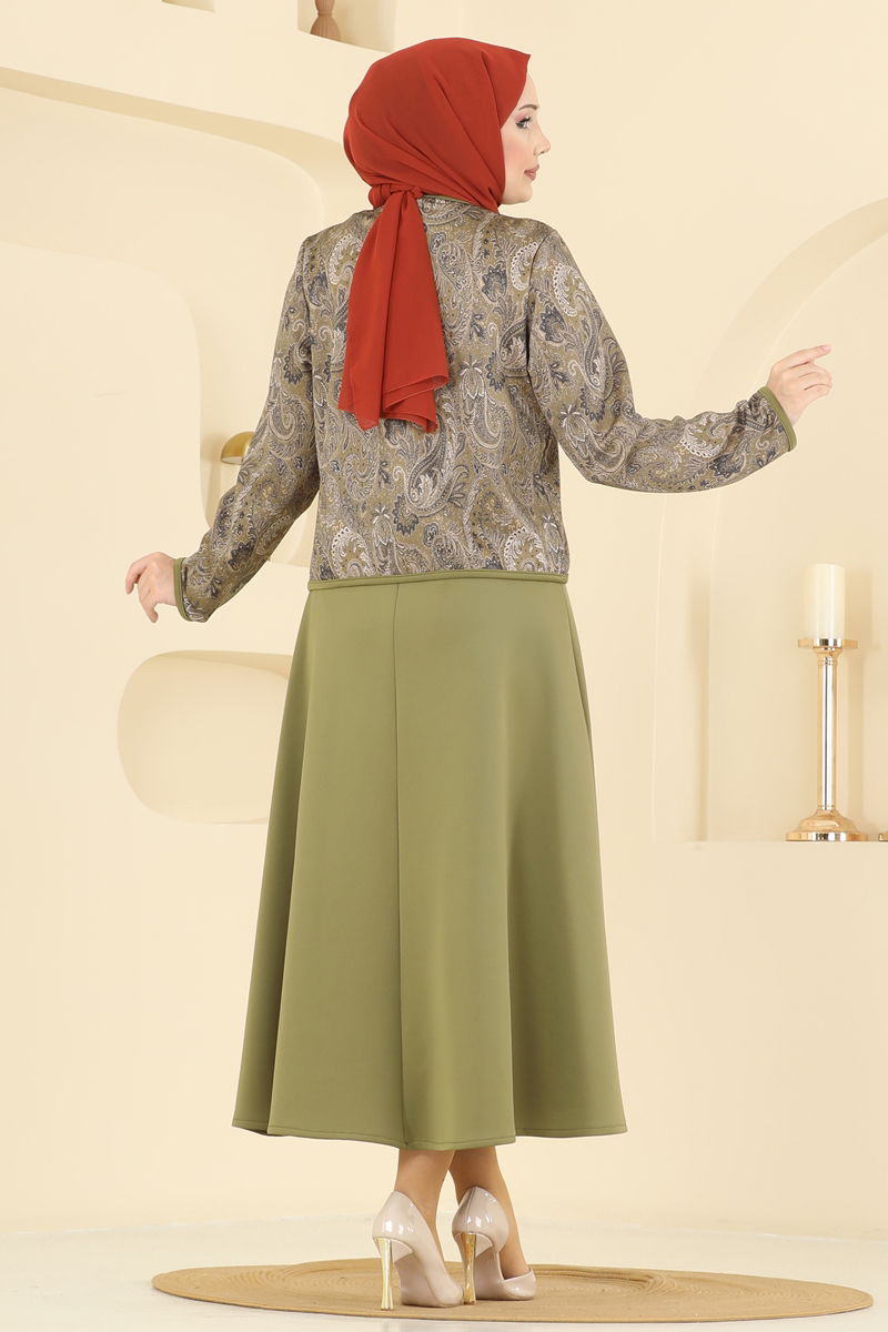 Haki Renkli Etnik Desenli Scuba Kıyafet Takımı