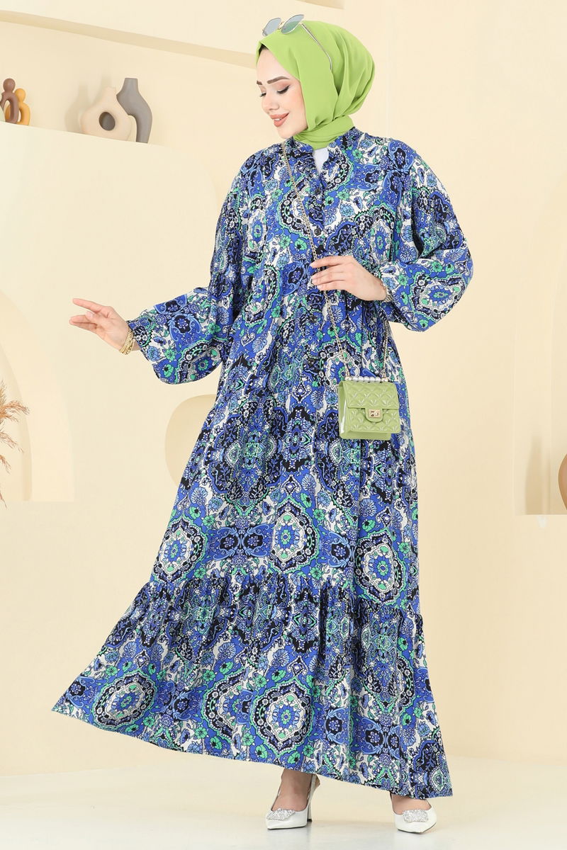 Etnik Desenli Viskon Elbise 832OZN1046-MS Saks