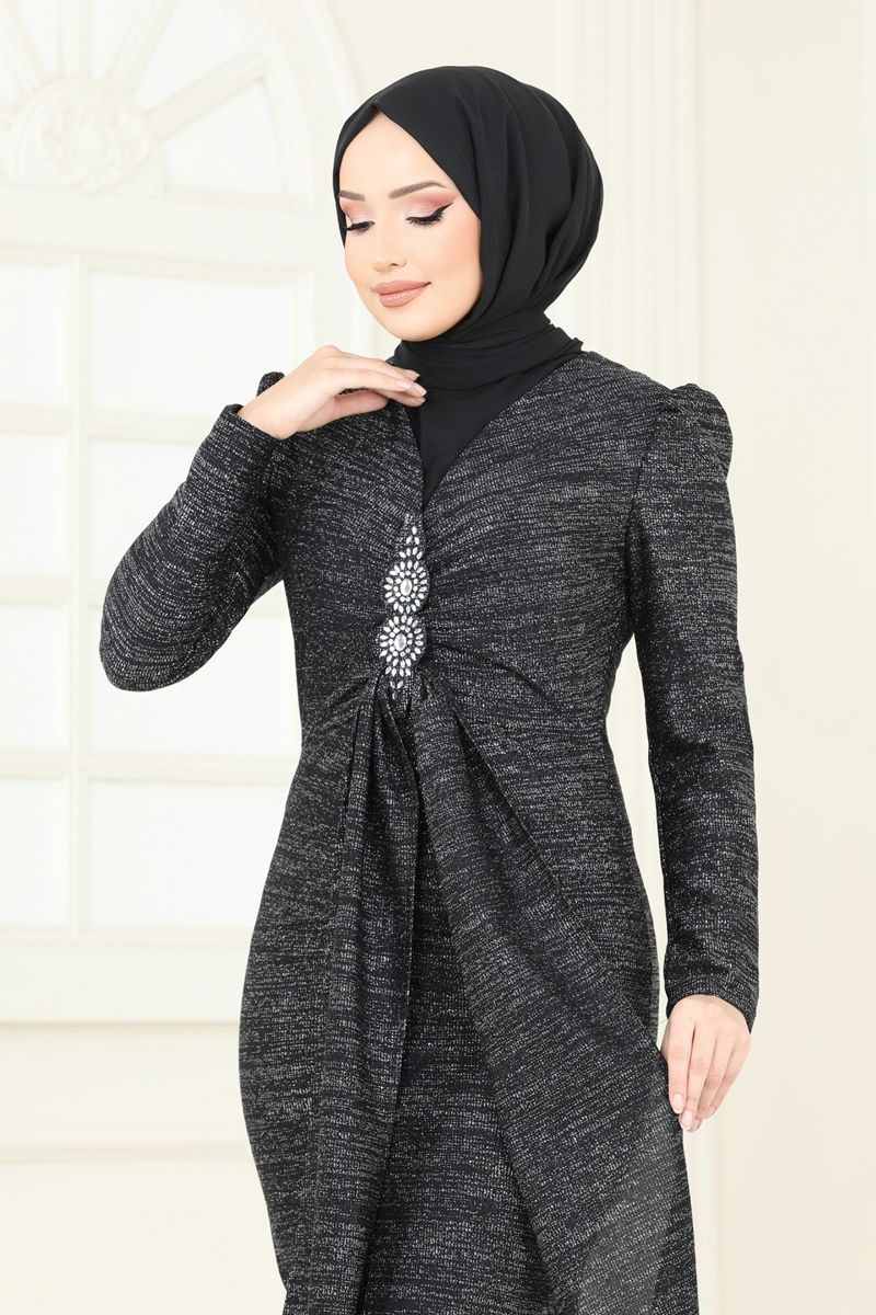 المنتج لديه ياقة ياقة V. المنتج به كشكشة في جزء التنورة. يحتوي على فتحة. غير مبطنة. المنتج به سحاب في جزء من الخلف. يتم لصق الحجارة. قد يكون هناك اختلاف في الدرجة اللونية في المنتج بسبب التقاط الصور الفوتوغرافية.