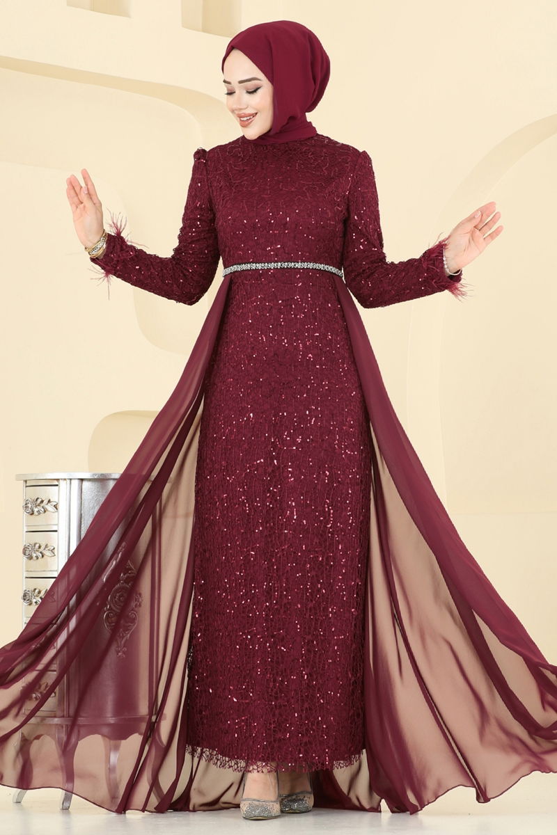 فستان سهرة خمري 2830ELC1143-MS