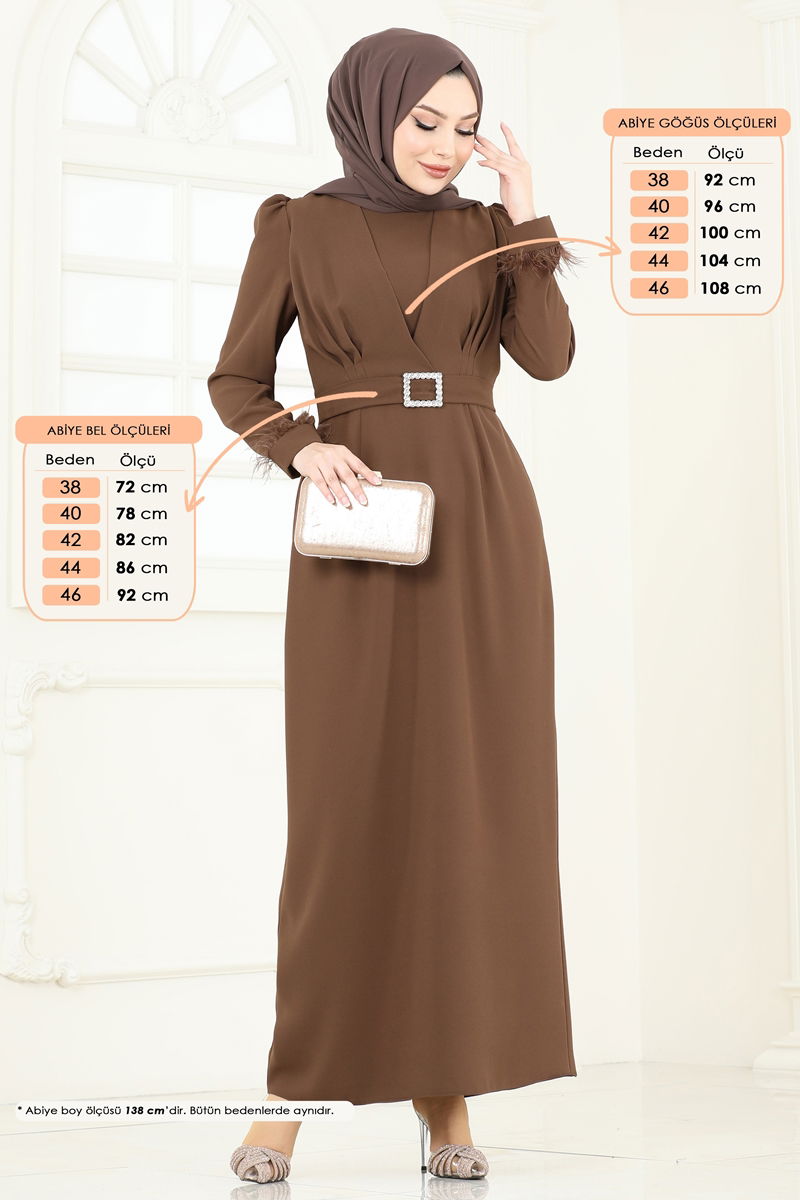 المنتج لديه ياقة دائرية. غير مبطنة. المنتج به سحاب في جزء من الخلف. يتم خياطة ريش الأوتريش في المنتج. يتم لصق الحجارة. الحزام متضمن، ،يمكن استخدامها حسب الرغبة قد يكون هناك اختلاف في الدرجة اللونية في المنتج بسبب التقاط الصور الفوتوغرافية.