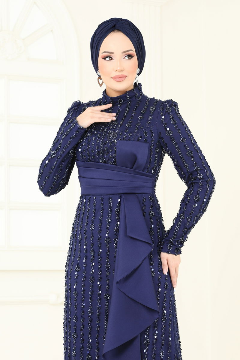 ميزة النسيج : مصنوع من قماش ساتان مطرز بالخرز من الدرجة الأولى.