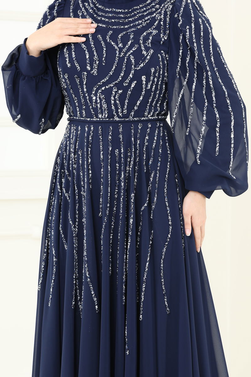 Enhance your elegance with the Stone Detailed Evening Dress, a perfect choice for women who adhere to modest dressing. This dress, made of chiffon, is suitable for all seasons and should only be dry cleaned. Its mandarin collar design and lined structure provide both comfort and a sophisticated look. With its elegant stone details, this dress will make you dazzle on your special occasions.