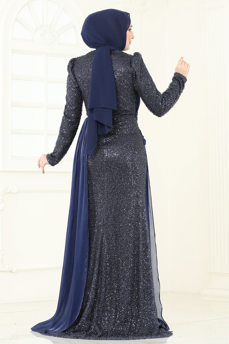 Designed for your most special occasions, the SUAL Embroidered Tail Detail Evening Dress is an ideal choice for those who love modest fashion. Suitable for all seasons, this dress brings the elegance of organza fabric to your silhouette. With its bike neck and lined design, it prioritizes comfort while offering easy use with its zipper back. The sparkling sequin details add a dazzling elegance. Note: The product on the model is size 38; should be dry cleaned only.