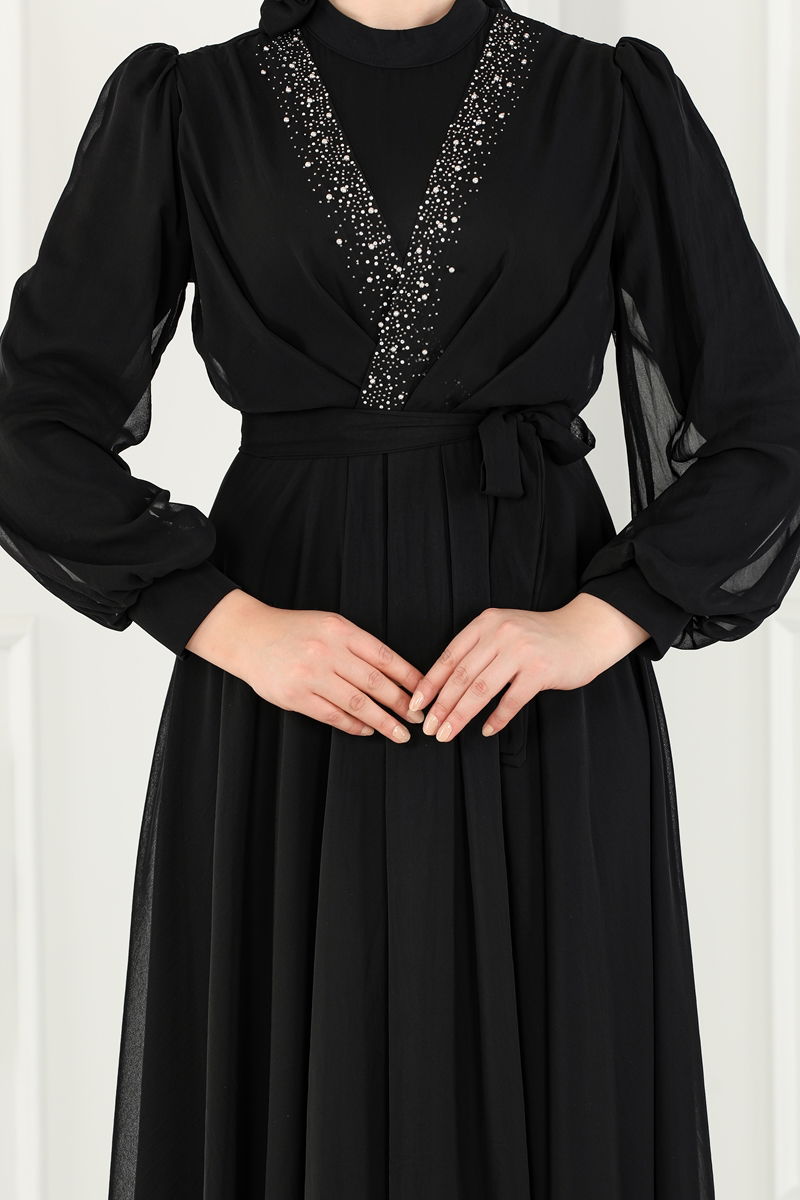 المنتج لديه ياقة نصف بيضوية. مبطنة.. المنتج به سحاب في جزء من الخلف. تم اضافة اللؤلؤ بطريقة التعبئة الحزام متضمن، ،يمكن استخدامها حسب الرغبة يتم لصق الحجارة. قد يكون هناك اختلاف في الدرجة اللونية في المنتج بسبب التقاط الصور الفوتوغرافية.